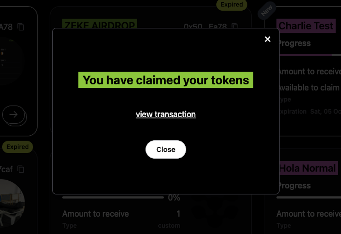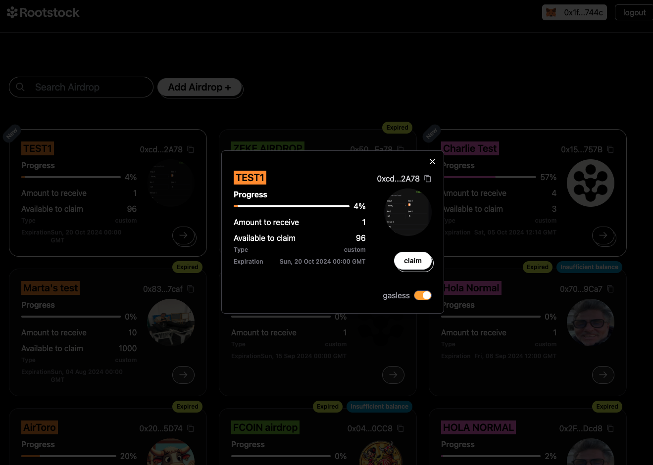 Once you have the application running locally, follow these steps to interact with the airdrop functionality: